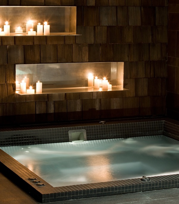 Homedekoratif niş ile süslenmiş jakuzi fikirleri
