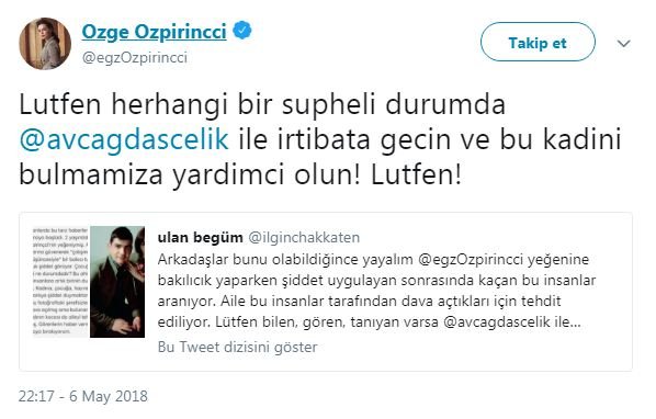 Olayın ortaya çıkmasının ardından bakıcının kaçtığını söyleyen Özpirinçci kaçan bakıcının fotoğrafını paylaşarak, bakıcının bulunması için yardım istedi