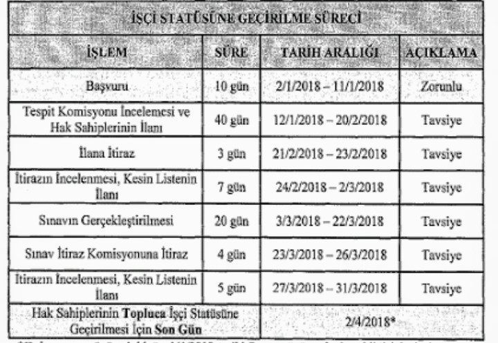 5- Hak sahipleri en son 2 Nisan 2018’de topluca işçi kadrosuna geçirilecek.