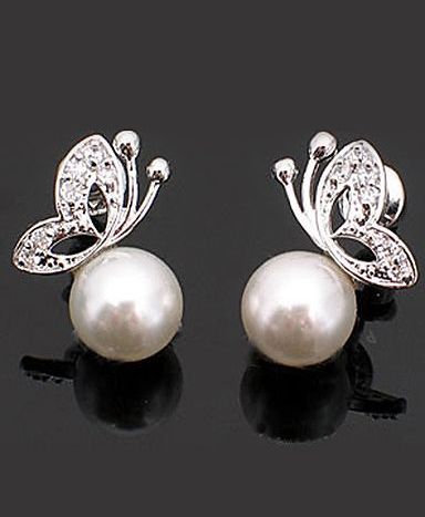kelebek figürlü şık inci küpe modeli
