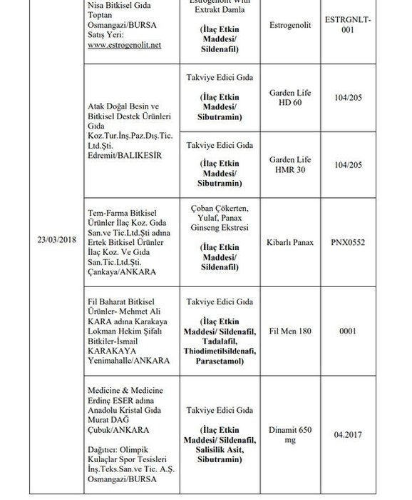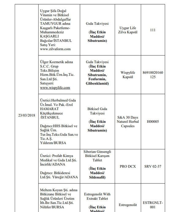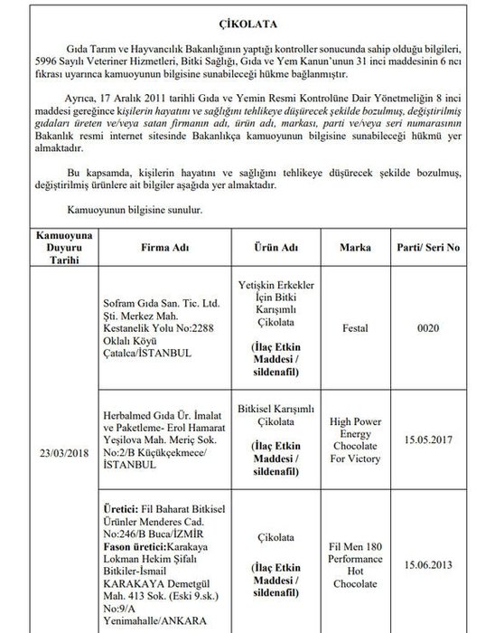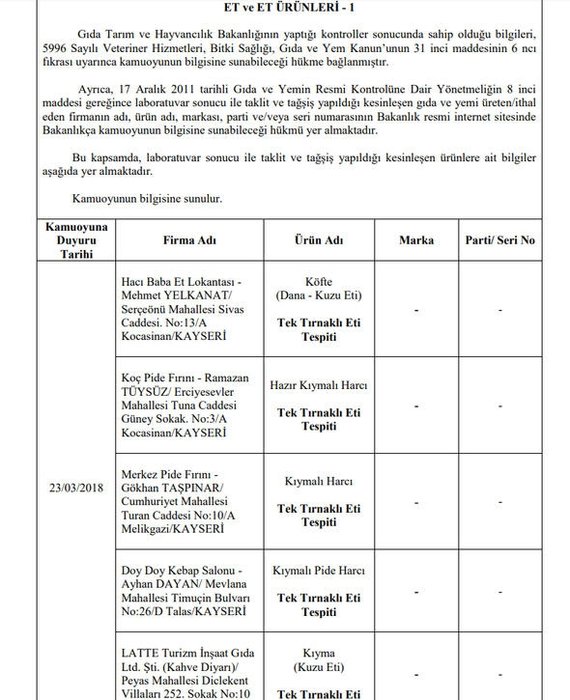 Bakanlığın internet sitesinde, taklit ve tağşiş yaptığı belirlenen işletmeler ve ürünlerinin parti numaraları ilan edildi.
