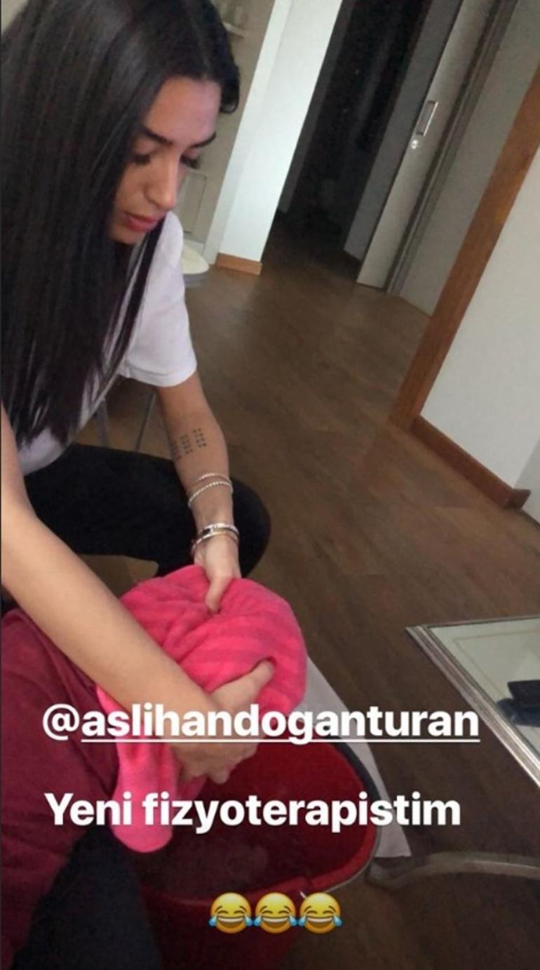 Medipol Başakşehir’de forma giyen milli futbolcu Arda Turan, eşi Aslıhan Doğan Turan’ın fotoğrafını “Yeni fizyoterapistim” diyerek paylaştı.