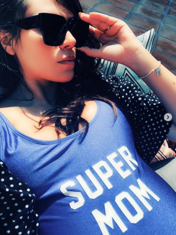 Şimdilerde hamilelik heyecanı yaşayan Caner Erkin’in eşi Şükran Ovalı, üzerinde ‘Süper Anne’ yazan mayosuyla güneşlenirken çekilmiş fotoğrafını sosyal medya hesabından paylaştı.