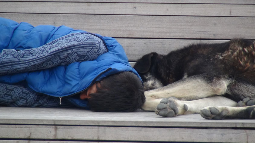 18 yaşına kadar yurtta kaldıktan sonra Taksim sokaklarında kalmaya başlayan 18 yaşındaki delikanlının köpeklerle aynı bankta uyuduğu görüntüler oradan geçen insanların yüreklerini burktu. Babasını küçük yaşta kaybettiğini annesinin ise başka biri ile evli olduğunu anlatan genç, “Köpekler en iyi dosttur onlarla uyur onlarla oynarım” dedi