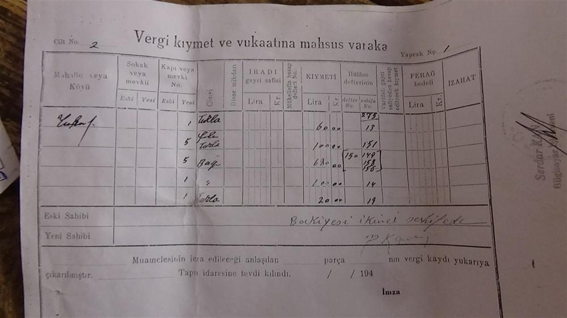 Mardin’in Yeşilli ilçesine bağlı Sancar Mahallesinde evinde tadilat yaparken küpler içinde Osmanlı tapularını ve vergileri bulan 60 yaşındaki Ali Aşa, haram yememek için mirasçıları arıyor. Sancar köyünde 2 yıl önce tadilat esnasında bulduğu Osmanlı tapularının Türkçe tapularını ve vergi kayıtlarına ulaşan Aşa, bir anda 6, 7 köyün sahibi çıkınca soluğu araştırma mahkemesinde aldı.