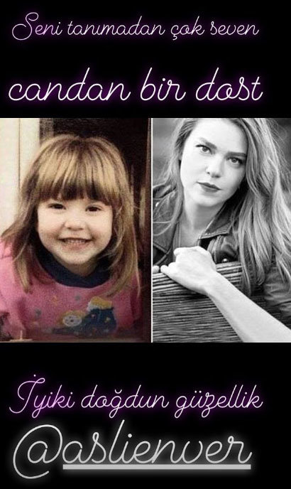 Şarkıcı Demet Akalın da, Aslı Enver‘in doğum gününü oyuncunun fotoğrafını koyarak ”Seni tanımadan seven can bir dost. İyi ki doğdun güzellik” notunu düşerek kutladı.