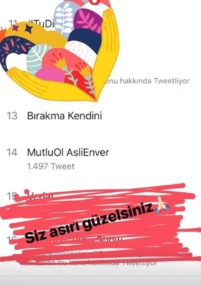 Öte yandan doğum günü olanoyuncuya fanları erken kutlama yapıp (dün) sosyal medyadan ‘MutluOlAslı’ hashtag’i açtı. Sürpriz karşısında Aslı Enver, sevenlerine teşekkür edip ‘siz aşırı güzelsiniz’ mesajını paylaştı.