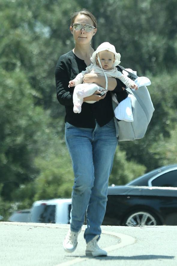 Bir kot pantolon ve siyah bir gömlek giyen Portman, iki farklı gün içinde sadece spor ayakkabılarını değiştirmişti.