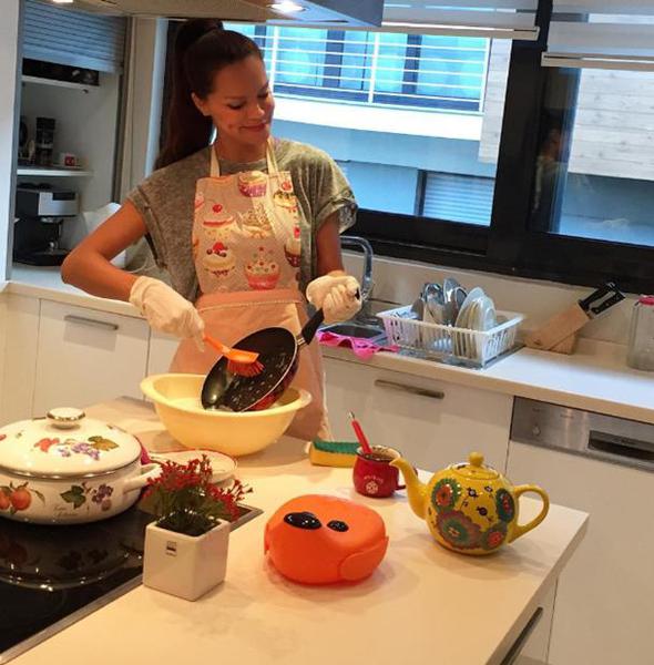 Ebru Şallı, çocuklarıyla birlikte yemek yaptıktan sonra mutfağı toparlamak onun görevi.