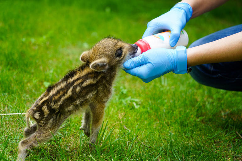 BURSA’da ormanda bulunan ve henüz 30 günlük olduğu tahmin edilen yavru domuz, Orman ve Su İşleri Bakanlığı Doğa Koruma ve Milli Parklar ikinci Bölge Müdürlüğü’nün bahçesinde sütle besleniyor. Yavrusunun annesinin avcılar tarafından vurulduğu değerlendiriliyor.