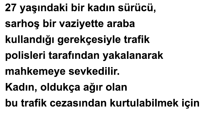 Başına gelen musibetten ders alıp uslanmayan kadın, beraatini kutlamak için bir bara gidip sarhoş oluncaya kadar içer. Daha sonra da yine sarhoş vaziyette direksiyonun başına geçer. Ve o sarhoş kafayla yolda giderken bir vatandaşa çarparak onu yirmi metre kadar arabasıyla sürükler.