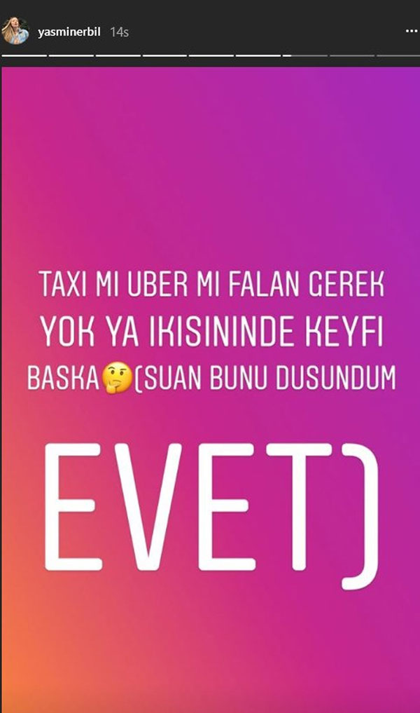 Taksi ve Uber karşılaştırmasını son yapan isim şovmen Mehmet Ali Erbil’in kızı Yasmin Erbil oldu.