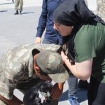 Konuşmanın ardından geçit töreni yapıldı. Törenin bitimindre askerlerin aileleriyle buluşması sırasında duygusal anlar yaşadı. Bu sırada diğer arkadaşlarının ailesine sarıldığı gören bir asker ise çömelerek ağlamaya başladı. Annesinin vefat ettiği öğrenilen asker, bir süre gözyaşı döktü. Askerin gözyaşı döktüğünü gören bir aile, yanına giderek teselli etmeye çalıştı. Oğlunun yemin töreni için alana gelen bir kadın ise, “Ben de senin annenim” diyerek ağlayan askere sarıldı.