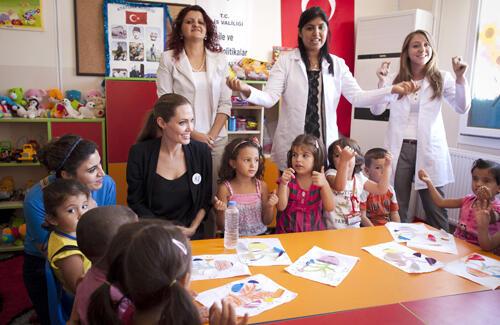 BM’deki görevi nedeniyle sık sık mülteci kamplarını ziyaret eden Angelina Jolie, 2011 ve 2015 yıllarında Türkiye’ye gelip Suriyeli mültecilerin yaşadığı kampları ziyaret etmişti. Jolie, Hatay’a yaptığı ziyarette kızı Shiloh da eşlik etmişti.