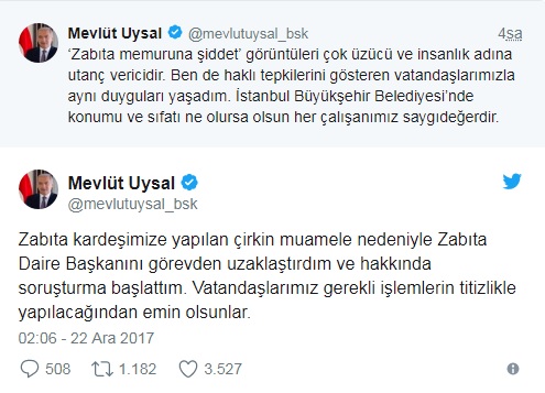 Yaşanan üzücü olayın ardından vatandaşların sosyal medyada büyük bir tepki gösterdikleri görüldü. Bu tepkilerin ardından geceyarısı Twitter hesabından bir açıklama yapan İstanbul Büyükşehir Belediye Başkanı Mevlüt Uysal, görüntüleri kendisinin de çok üzücü ve insanlık adına utanç verici bulduğunu yazdı. Uysal mesajında ayrıca Zabıta Daire Başkanı Tayfun Karali’yi görevden uzaklaştırdığını ve hakkında soruşturma başlattığını açıkladı.